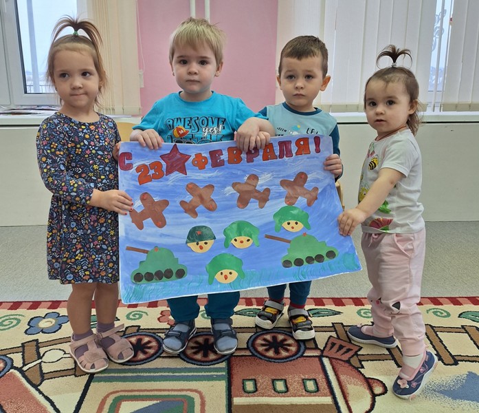 Все педагоги и воспитанники детского сада активно включились в работу познавательно-творческого проекта «23 февраля - День защитника Отечества». Проект направлен на расширение представлений у детей о Российской армии; на воспитание чувства уважения к российскому воину, его силе и смелости. Во время проекта дети знакомятся с историей возникновения праздника «День Защитника Отечества»; узнают, что военная служба – дело чести каждого солдата, а преданное служение своему Отечеству - высший смысл жизни и службы воина. Проект включает много интересных мероприятий: беседы, презентации, игры, спортивные развлечения, лепка, аппликация, рисование по теме. Организация и проведение таких проектов является основным направлением патриотического воспитания детей, способствующим развитию личности гражданина и воспитания долга защитника Отечества.